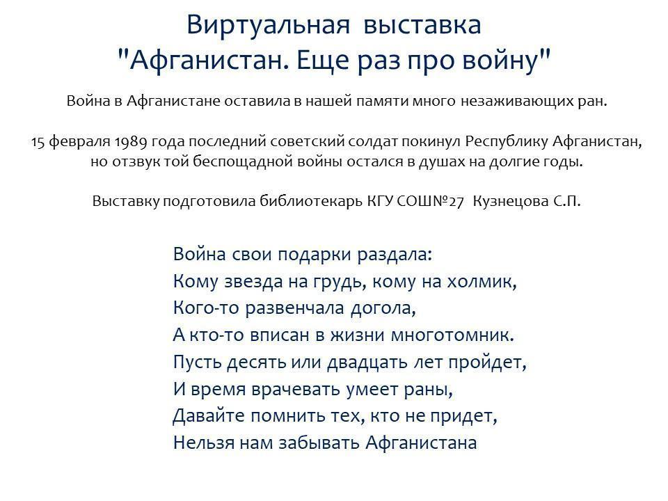 Виртуальная выставка"Афган » "№ 27 жалпы орта білім беретін мектебі" КММ, Семей қаласы, Абай облысы.