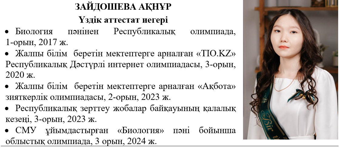 ЗАЙДОШЕВА АҚНҰР - Үздік аттестат иегері » "№ 27 жалпы орта білім беретін мектебі" КММ, Семей қаласы, Абай облысы.