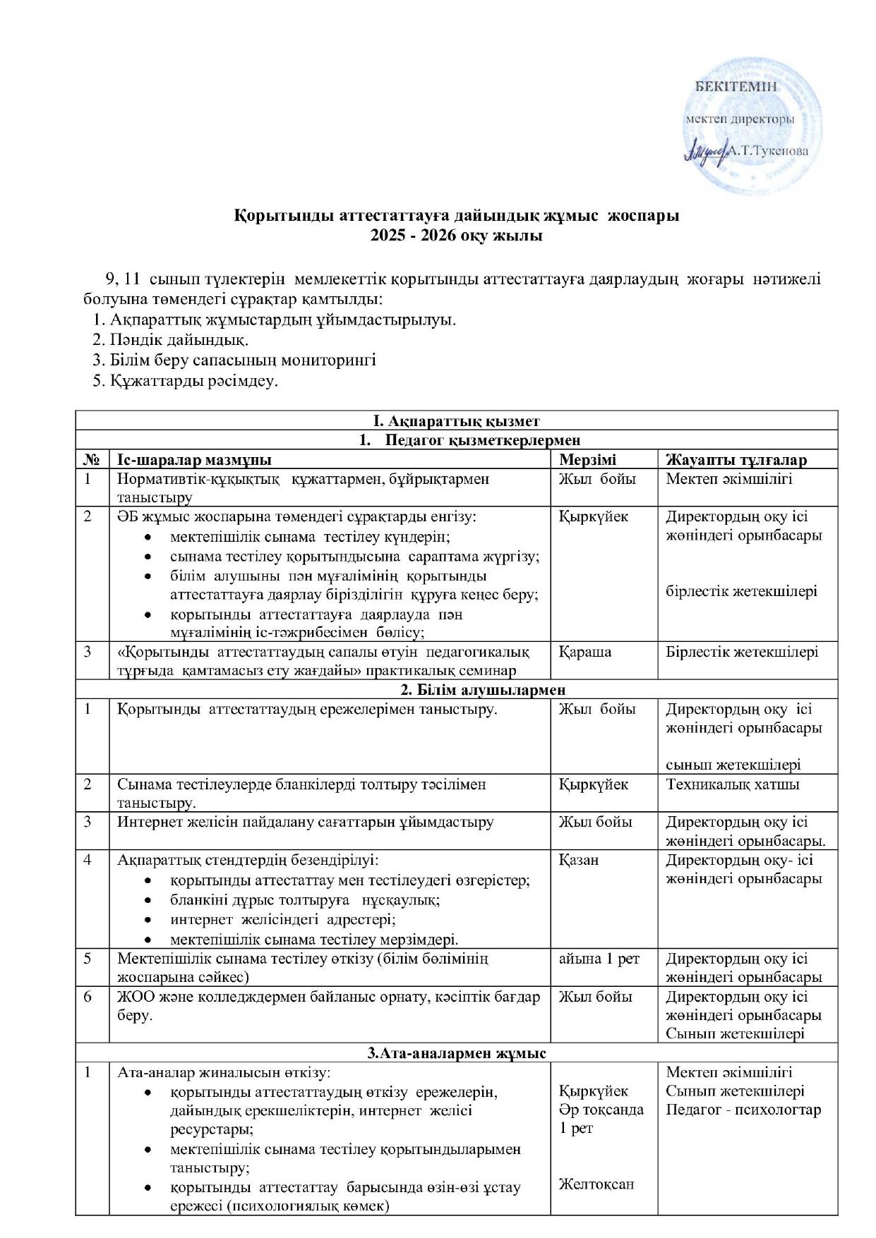 » » » Қорытынды аттаестаттауға дайындық жұмыс жоспары