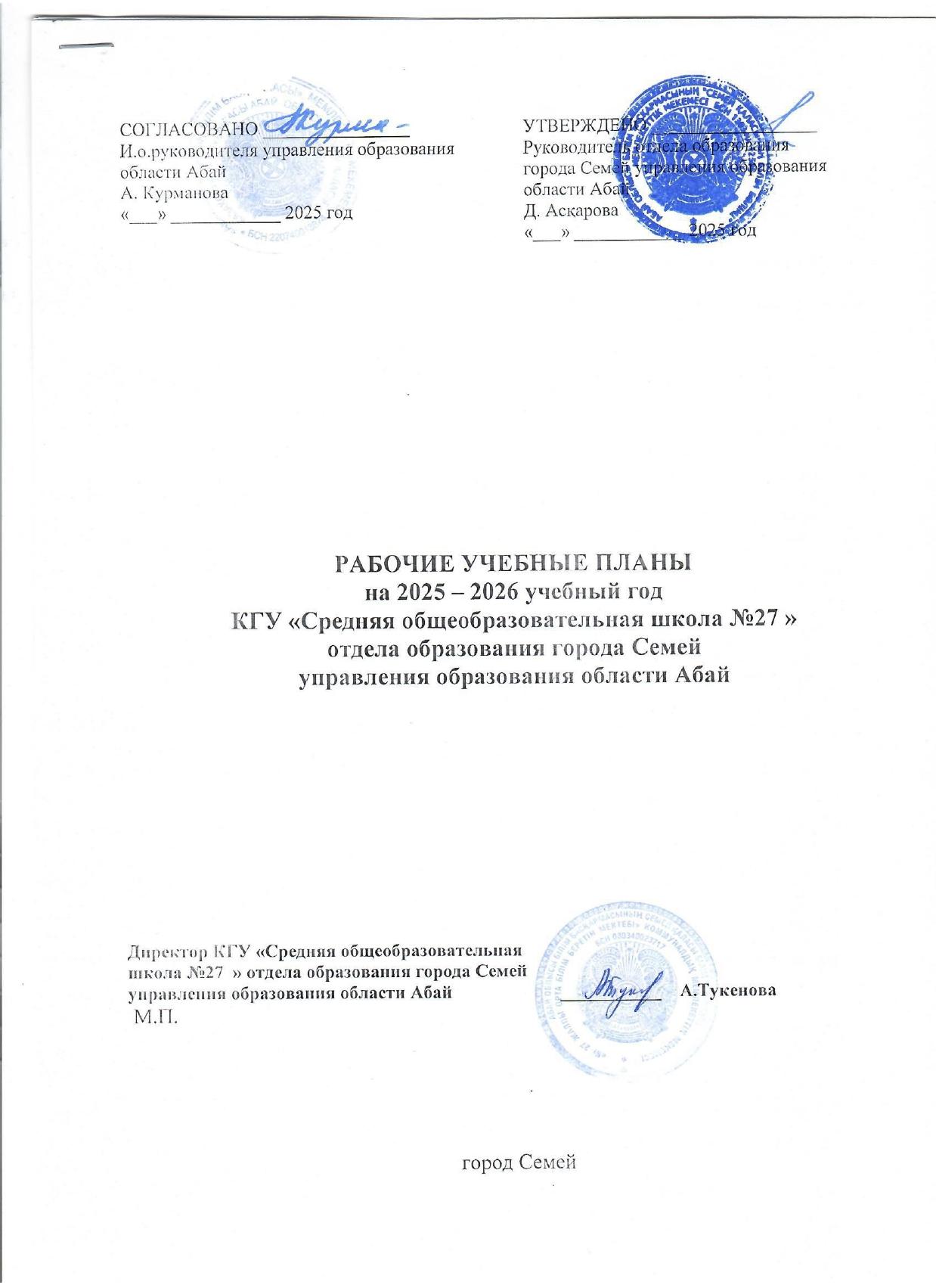 Оқу жұмыс жоспары, 1-11, орыс сыныптары » "№ 27 жалпы орта білім беретін мектебі" КММ, Семей қаласы, Абай облысы.