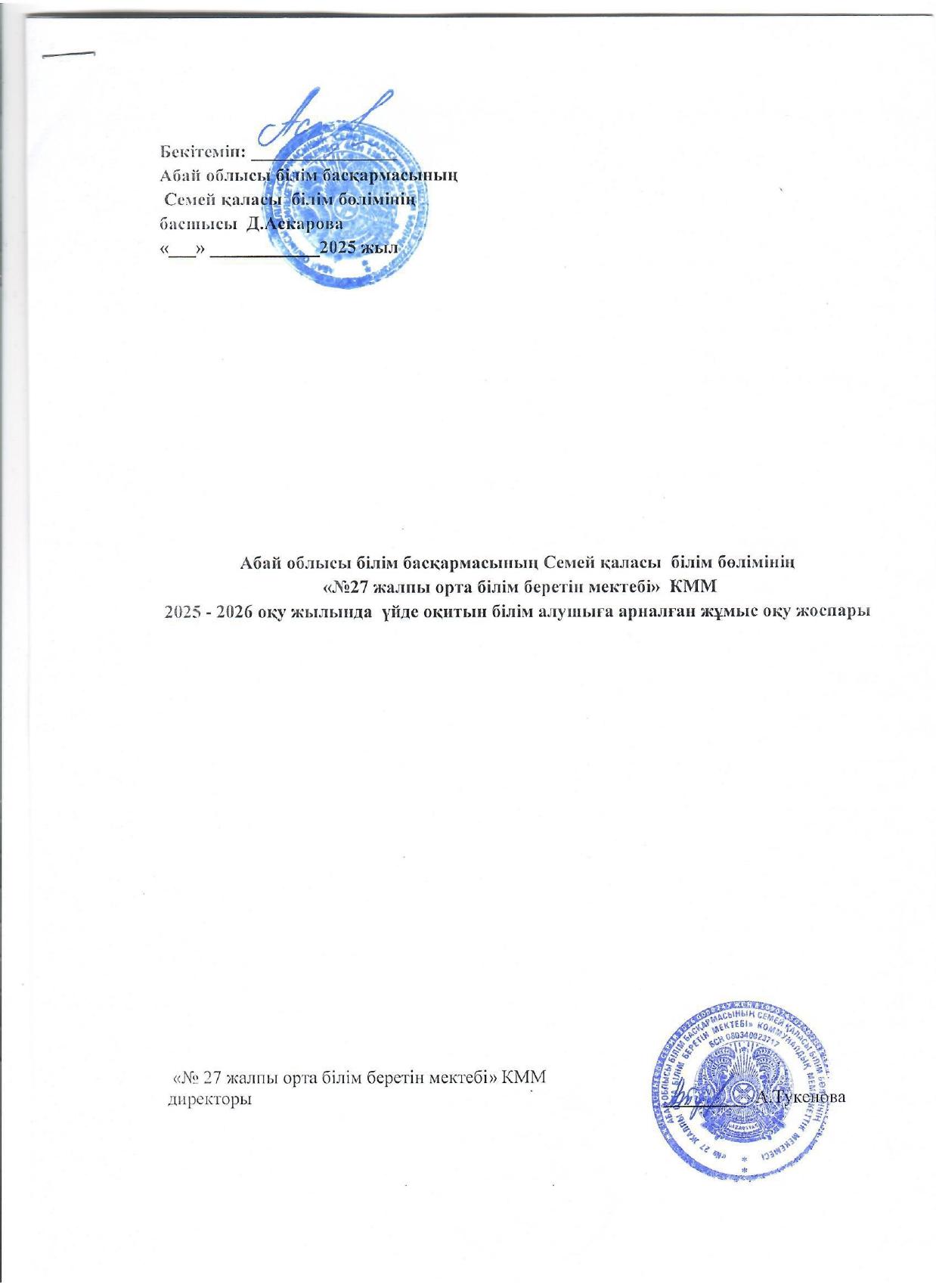 Үйде оқитын баллаға арналған арналған оқу жоспары » "№ 27 жалпы орта білім беретін мектебі" КММ, Семей қаласы, Абай облысы.